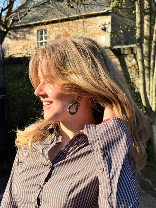 The “Felicity” earrings are a beautiful statement piece and are super light. With the cartridge they have something very special about them and give a hunting vibe. The earrings are perfect for special occasions or for everyday wear.