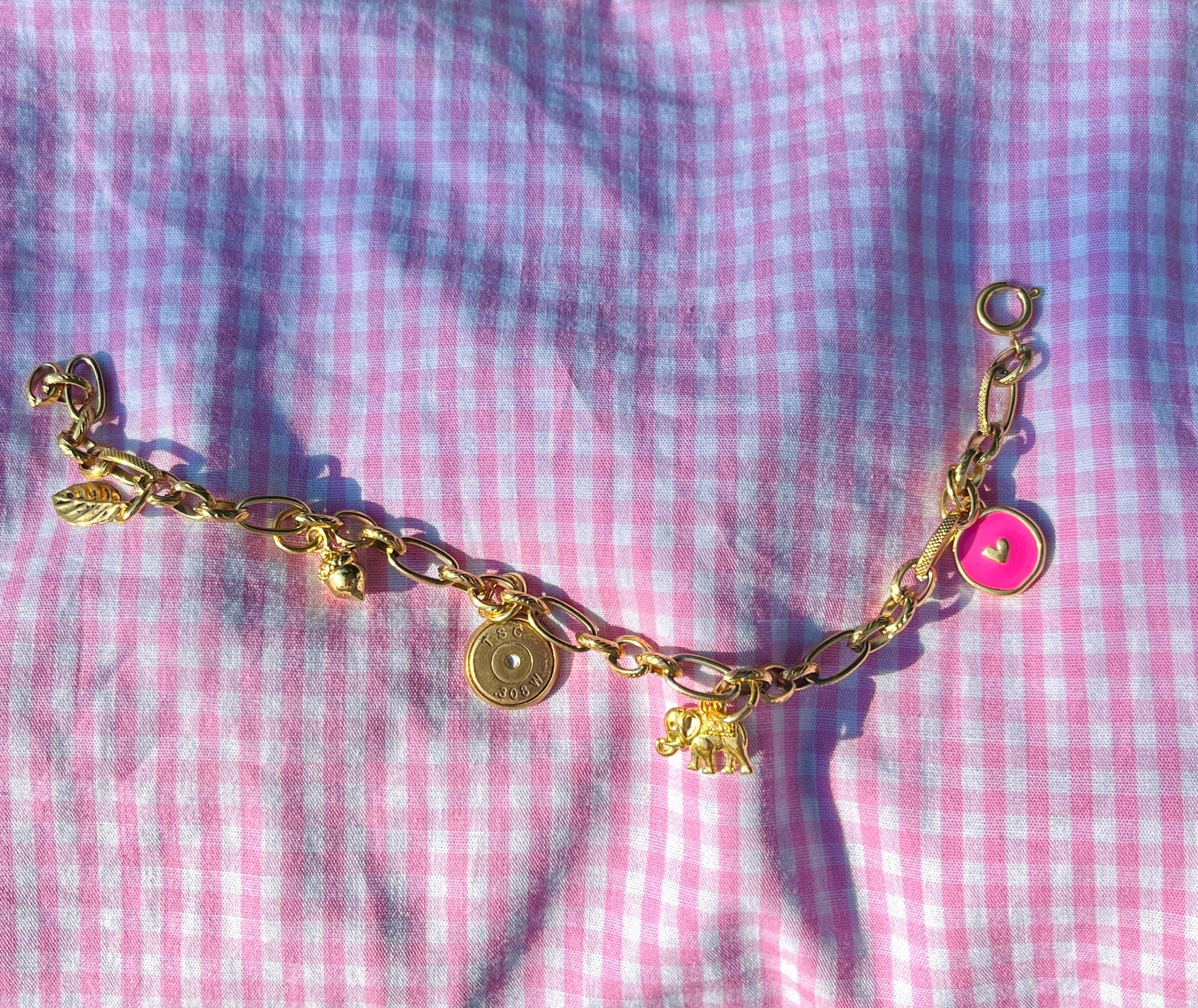 Das Charm-Bracelet ”Carla” ist aus vergoldetem Edelstahl gefertigt, sowie auch einige der Anhänger. Dadurch verlieren sie den Glanz nicht so schnell und können auch beim Duschen getragen werden.