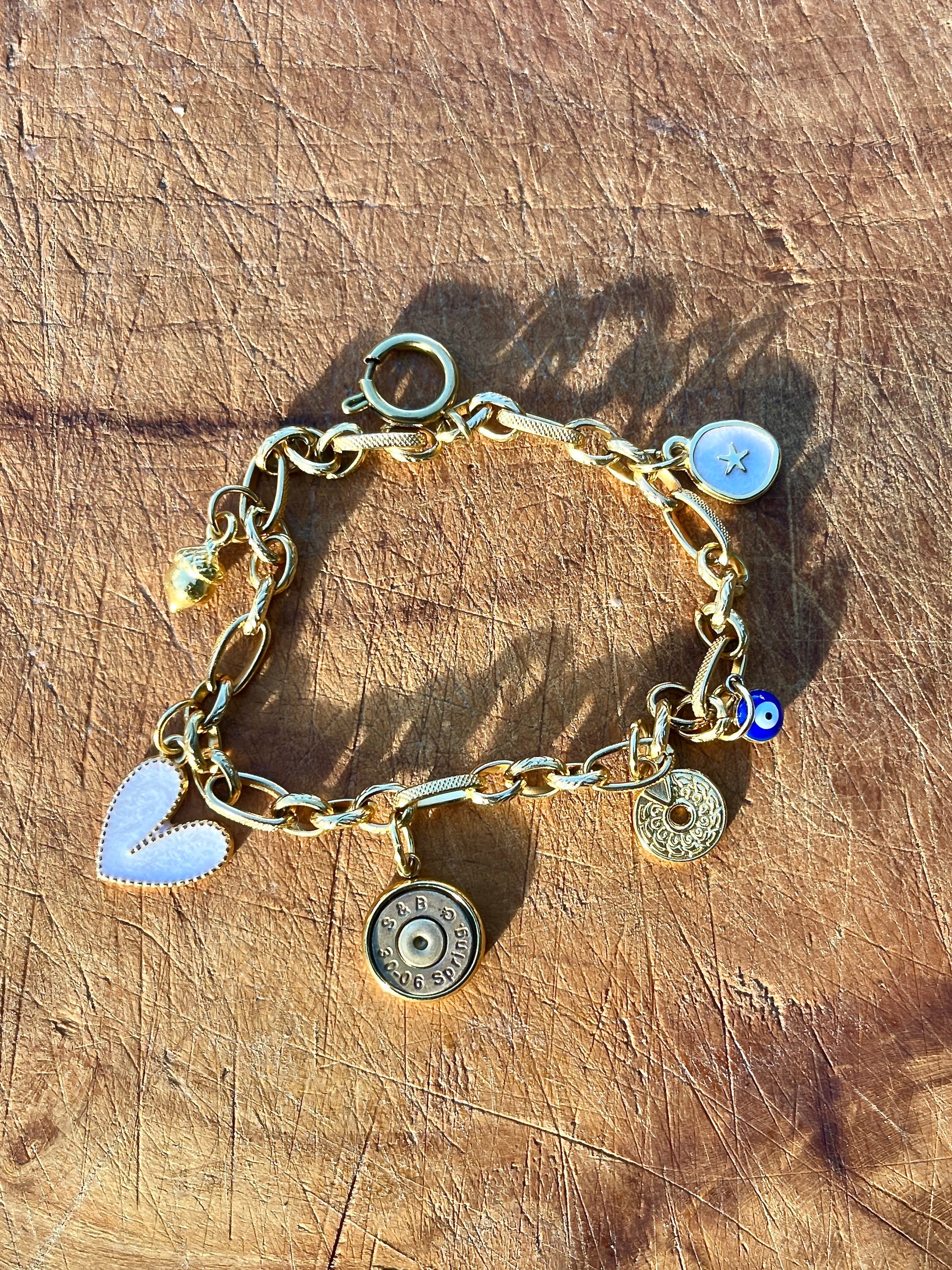 Das Charm-Bracelet “Julia” ist aus vergoldetem Edelstahl gefertigt, so wie auch einige der Anhänger. Die Zusammensetzung der Anhänger vermittelt einen besonderen Vibe und gibt direkt gute Laune!