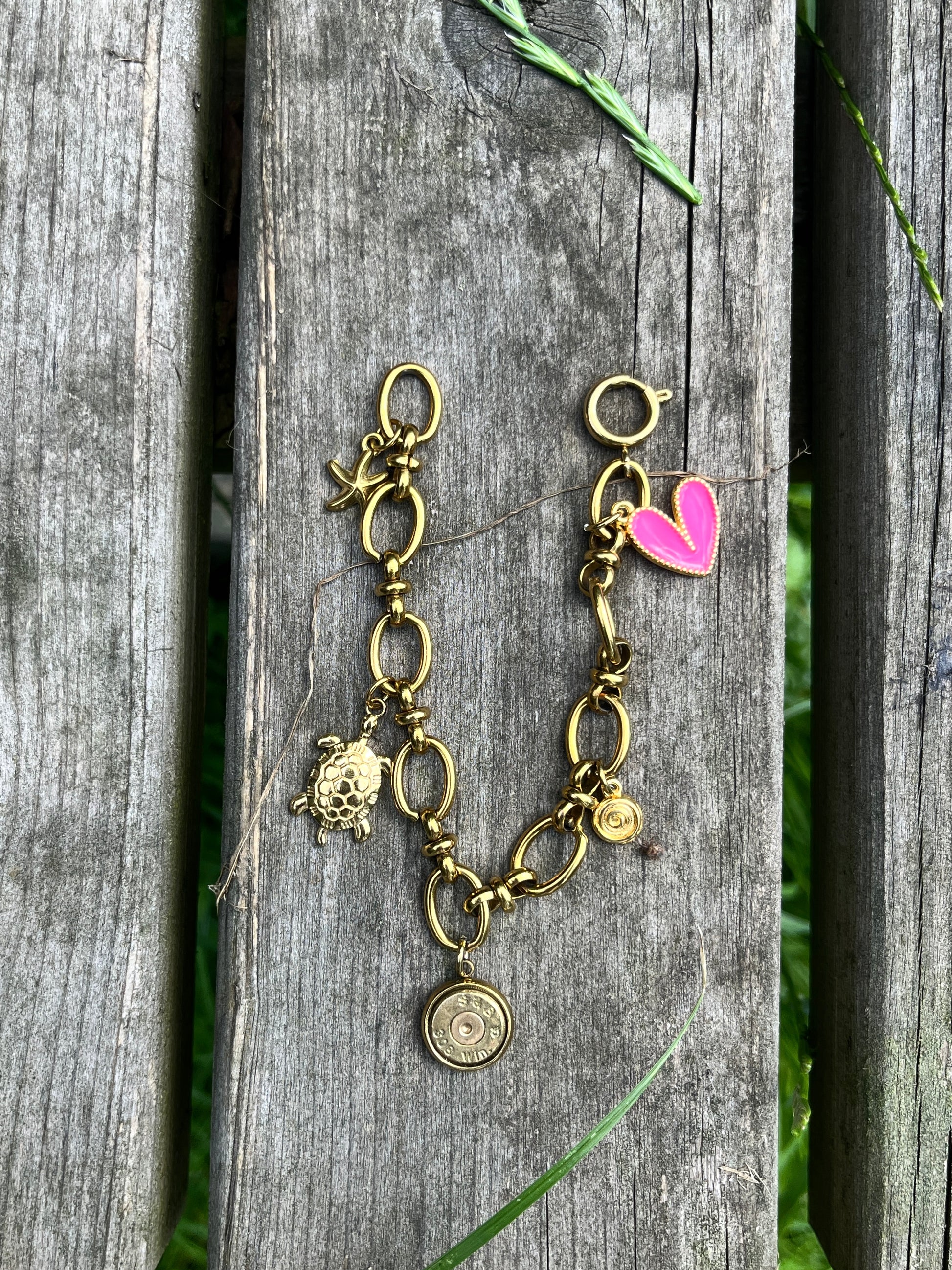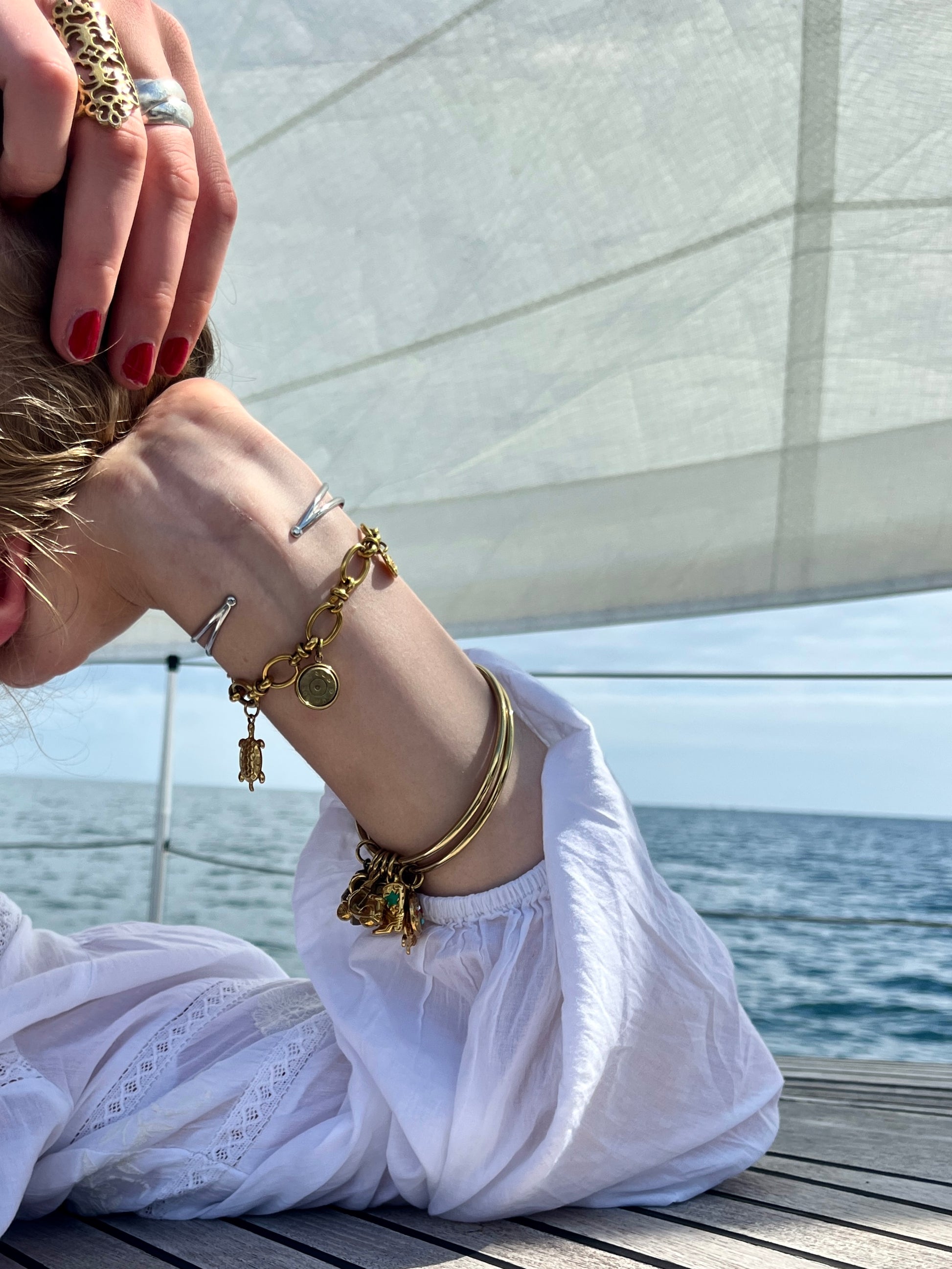 Das Charm-Bracelet "Philippa" ist aus robustem Edelstahl gefertigt. Die Anhänger sind bewusst ausgewählt sodass sie zum einen stabiler sind als auch beständiger gegen Anlaufen sind.