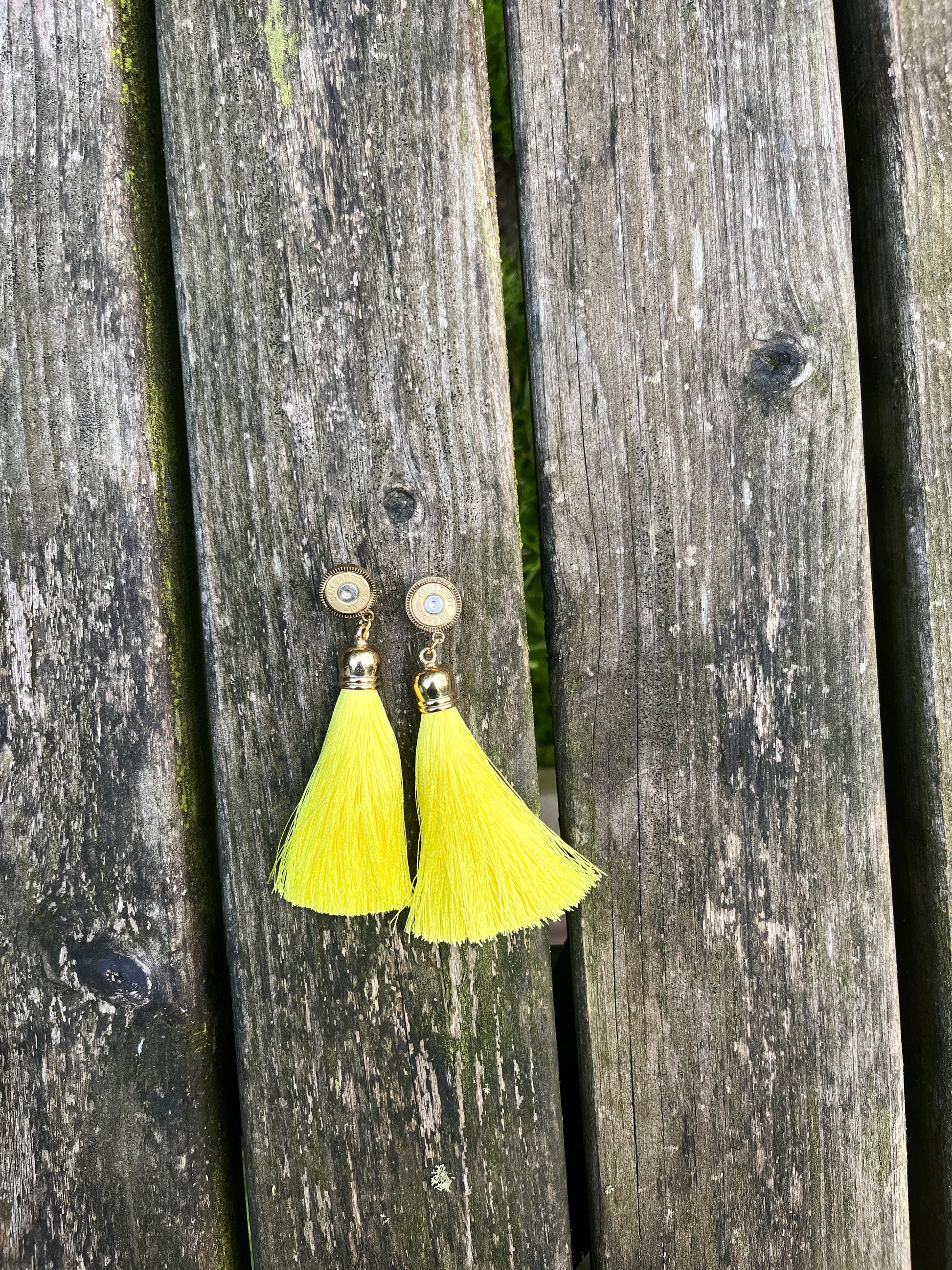Die "Citrus Tassel" Ohrringe schreien nach guter Laune, Sommer & allem was dazugehört. Sie sind super leicht und der Stecker ist etwas anders als die der anderen Ohrringe, ist aber auch nickelfrei und ein stückweit Edler.
