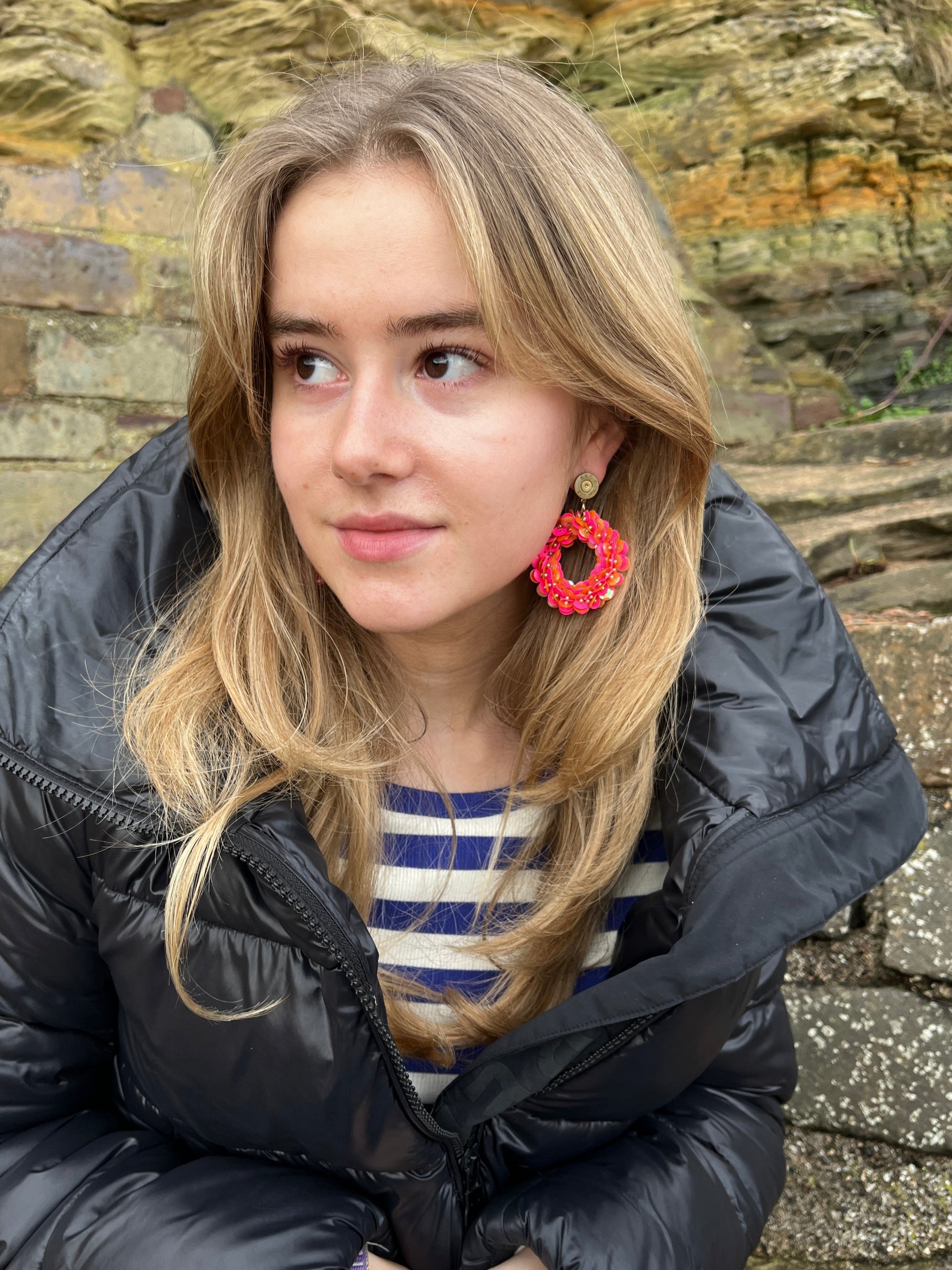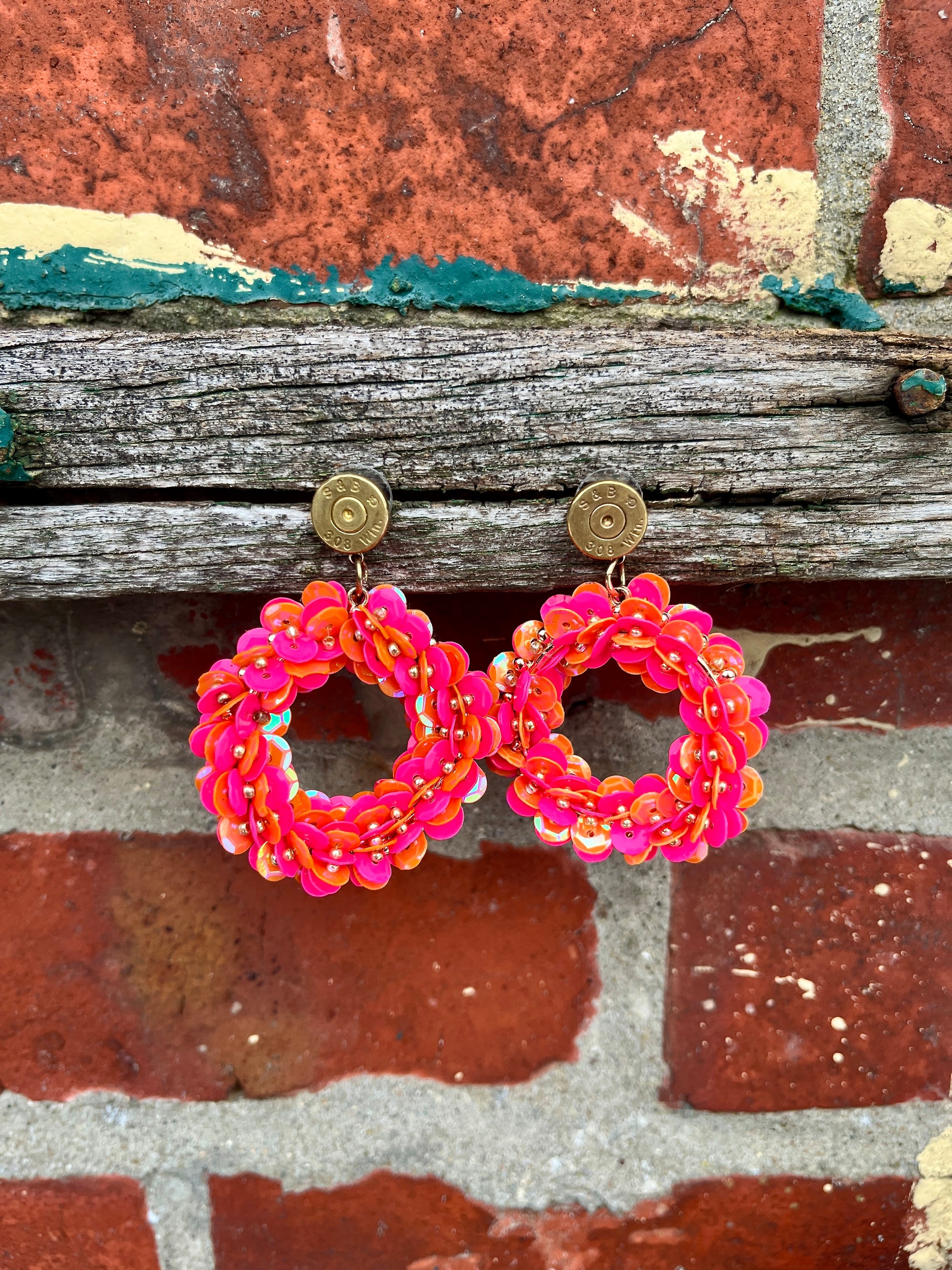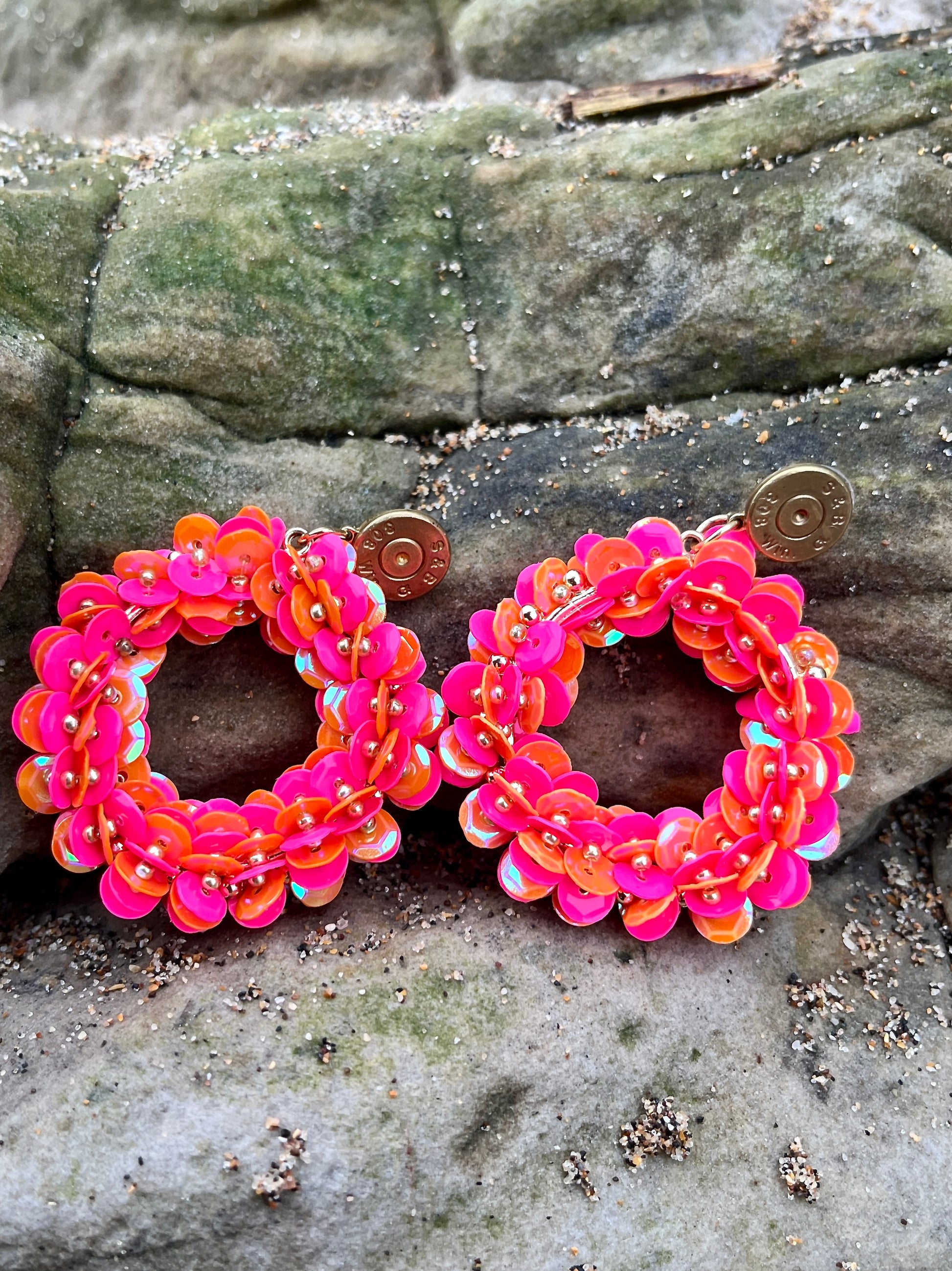 Die "Coral Confetti" Ohrringe sind DER Hingucker! Durch die Pailletten sehen die Ohrringe aus wie Konfetti was sie so besonders macht. Der auffällige Mix aus Orange und Pink vermittelt nicht nur das Gefühl von Sommer und direkt guter Laune, sondern peppt dein Outfit nochmal so richtig auf!