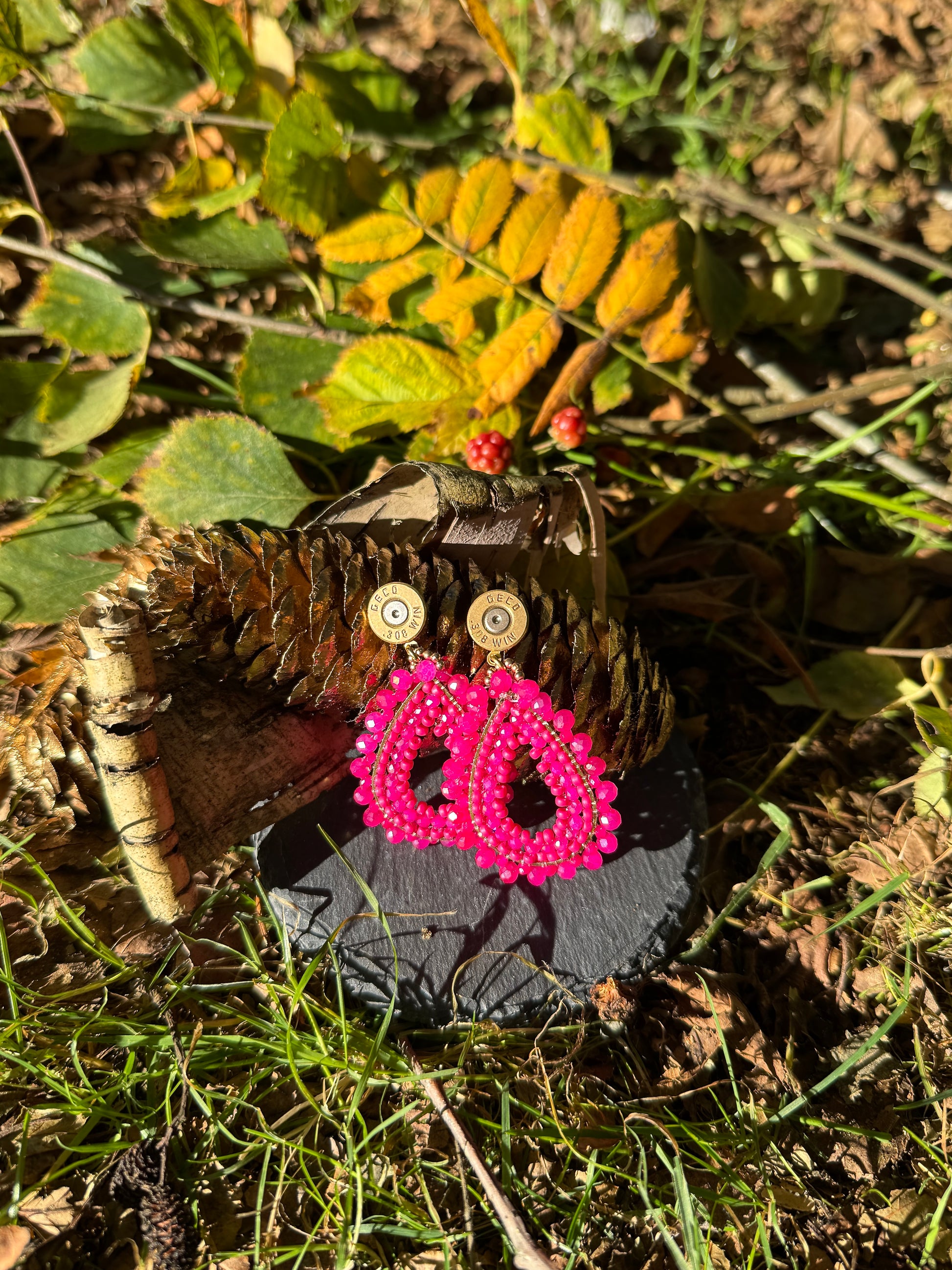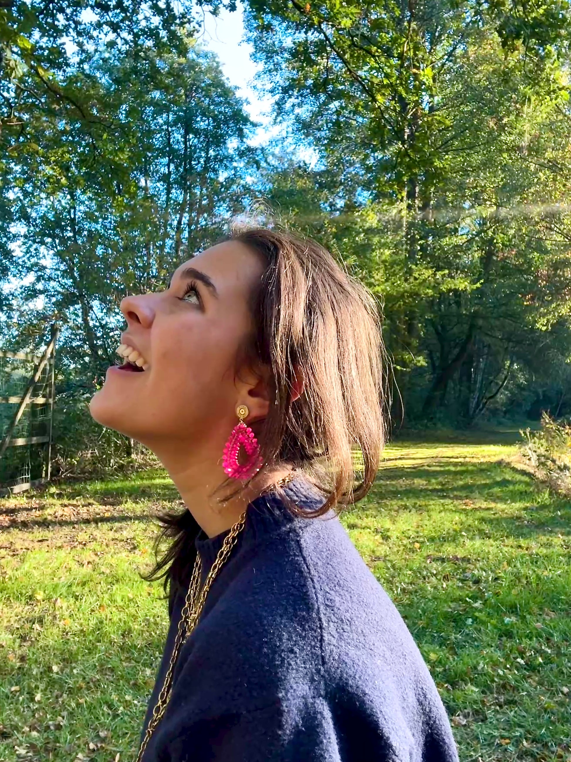 Die pinkfarbenen Dropped Ohrringe sind ein totaler Hingucker, besonders wenn es um etwas dunklere Outfits geht. Sie sind Super leicht und somit sehr angenehm zu tragen! Die Patronen in gold bringen den perfekten Kontrast zu den "Dropped" Ohrringen.
