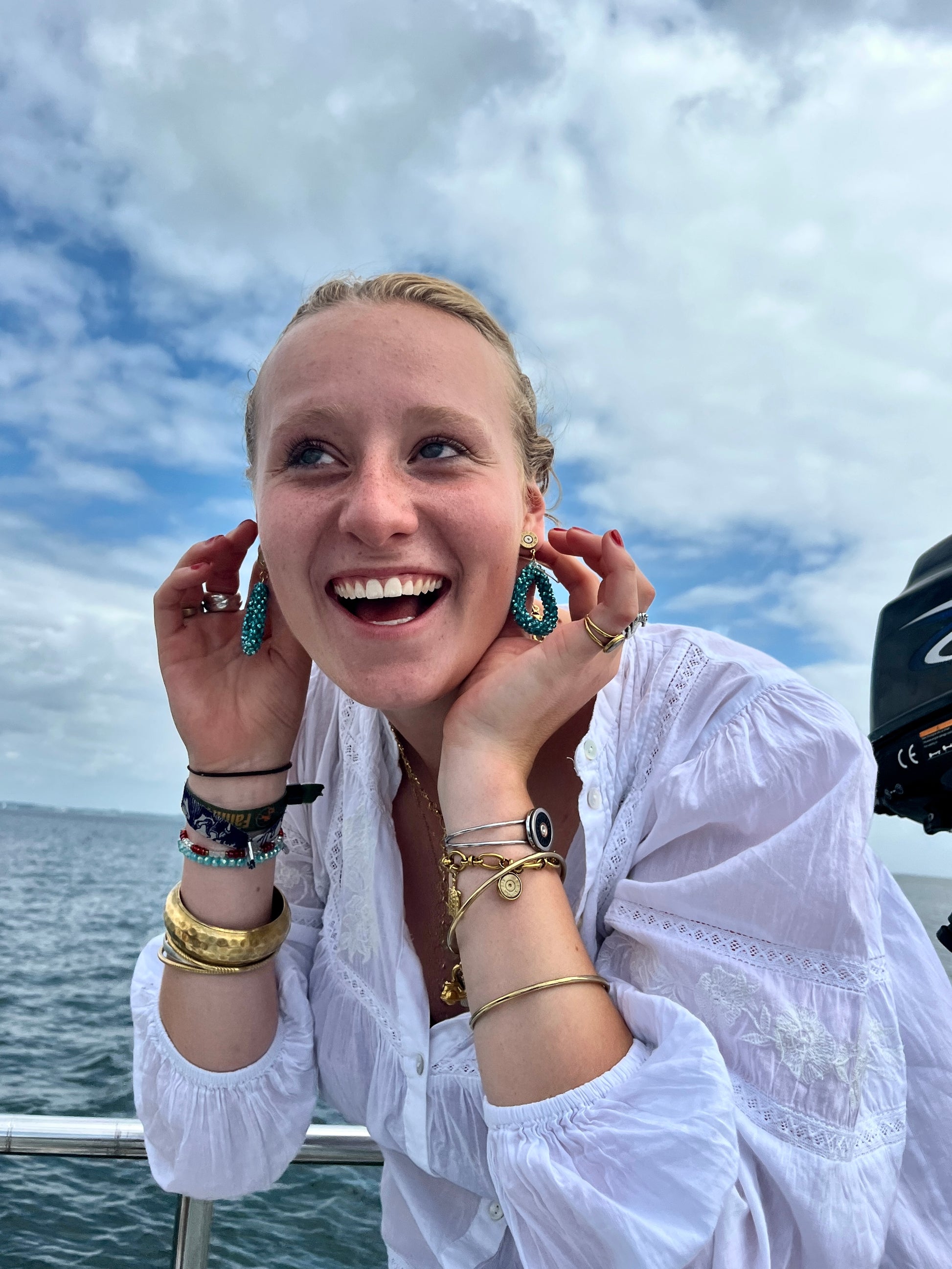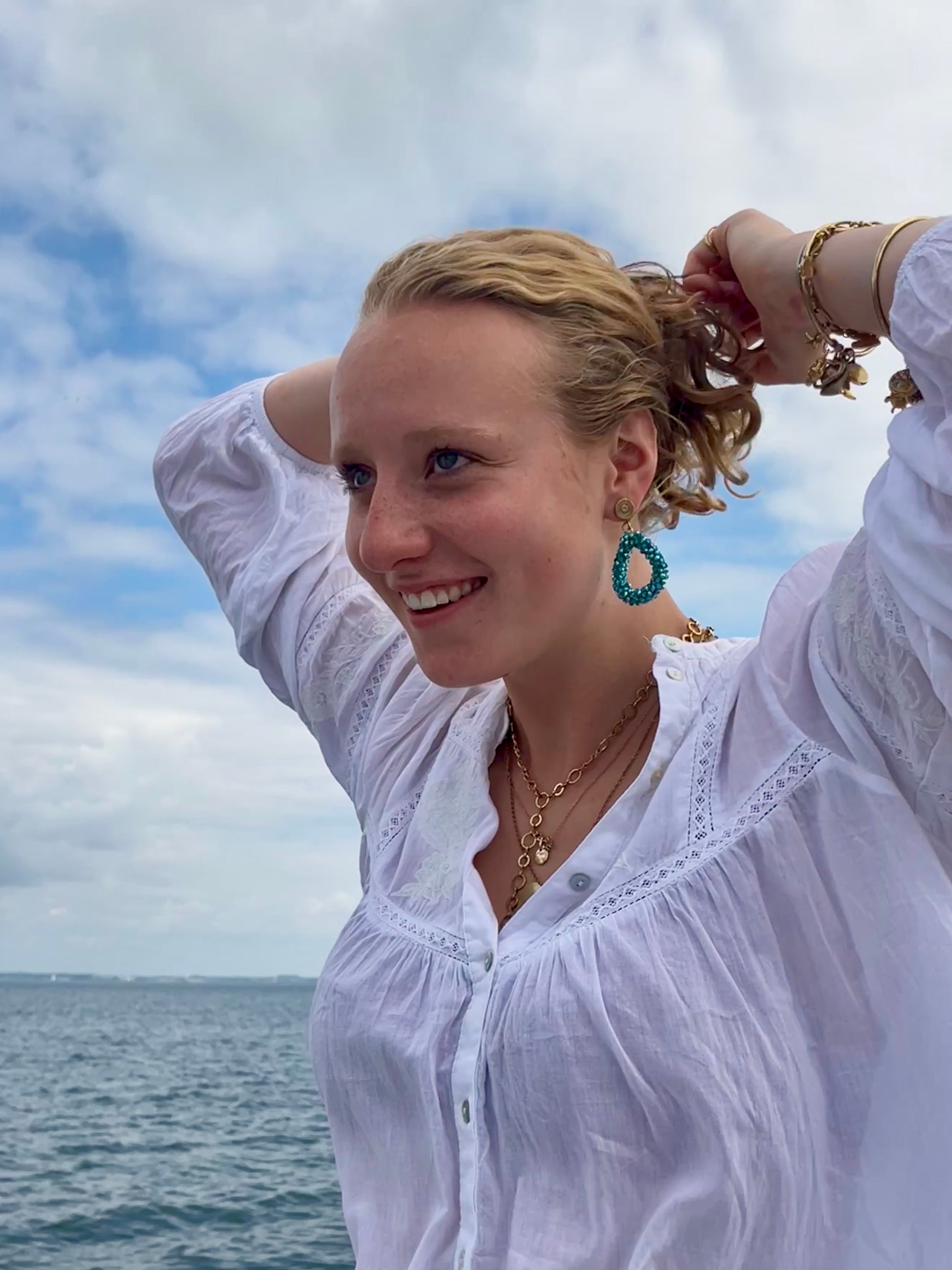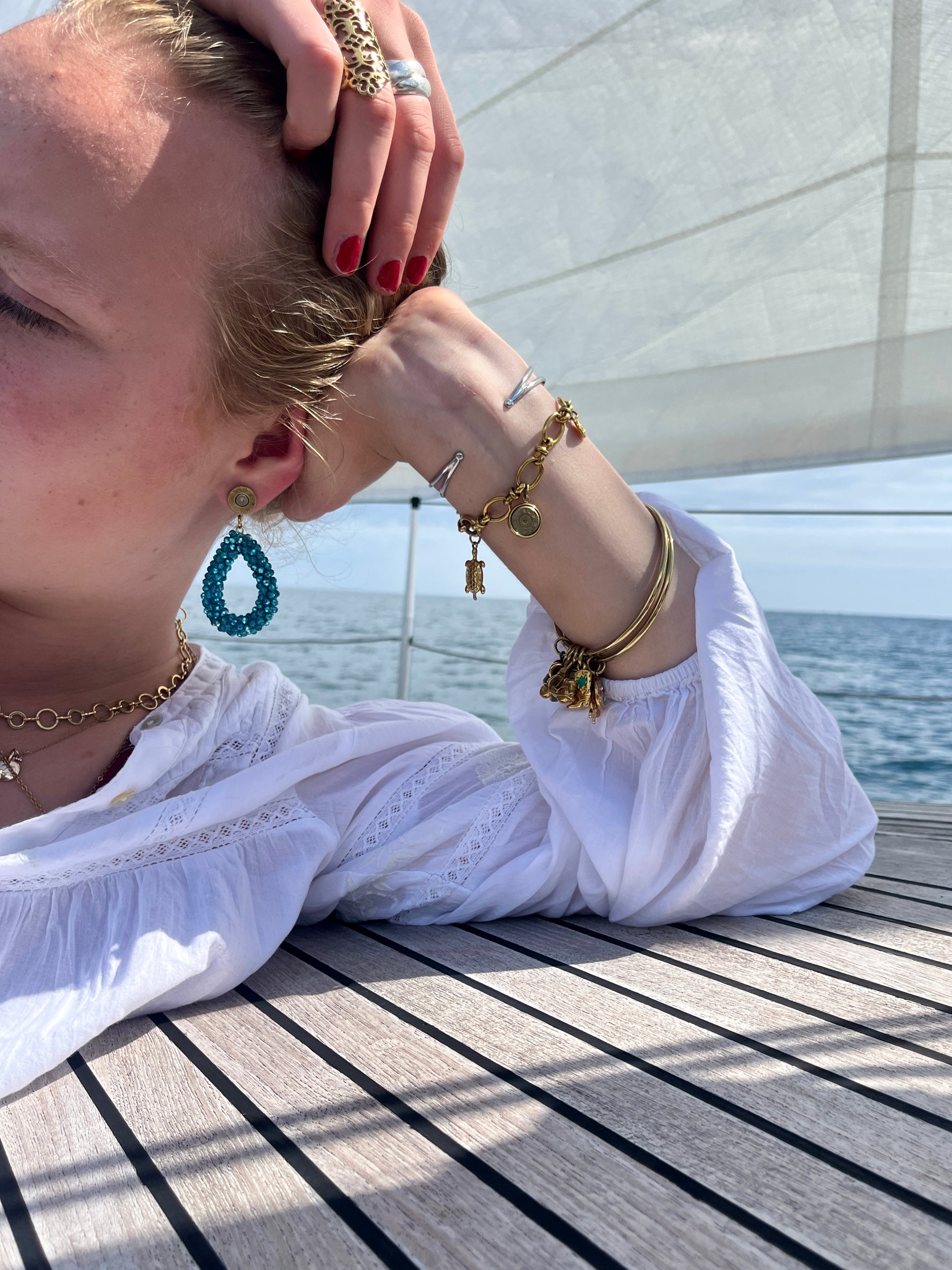 Die Felicity Ohrringe in Aquamarin sind total leicht! Der Anhänger ist aus Glasperlen gefertigt, was sie sehr edel aussehen lassen. Durch das relativ helle Blau der Perlen haben die Ohrringe je nach Lichteinfall einen anderen Blauton was sie super vielseitig macht. (Der Ohrstecker ist nickelfrei)
