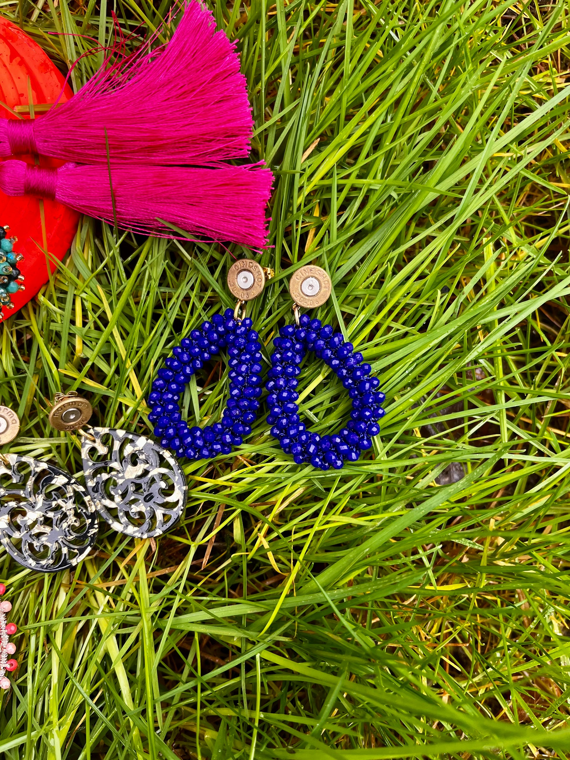 Die blauen Felicity Ohrringe sind total leicht und der Anhänger ist aus Glasperlen gefertigt, was sie super edel aussehen lassen. Je nach Lichteinfall wirken die Ohrringe heller oder dunkler in ihrem Blauton der Ohrstecker ist natürlich nickelfrei.