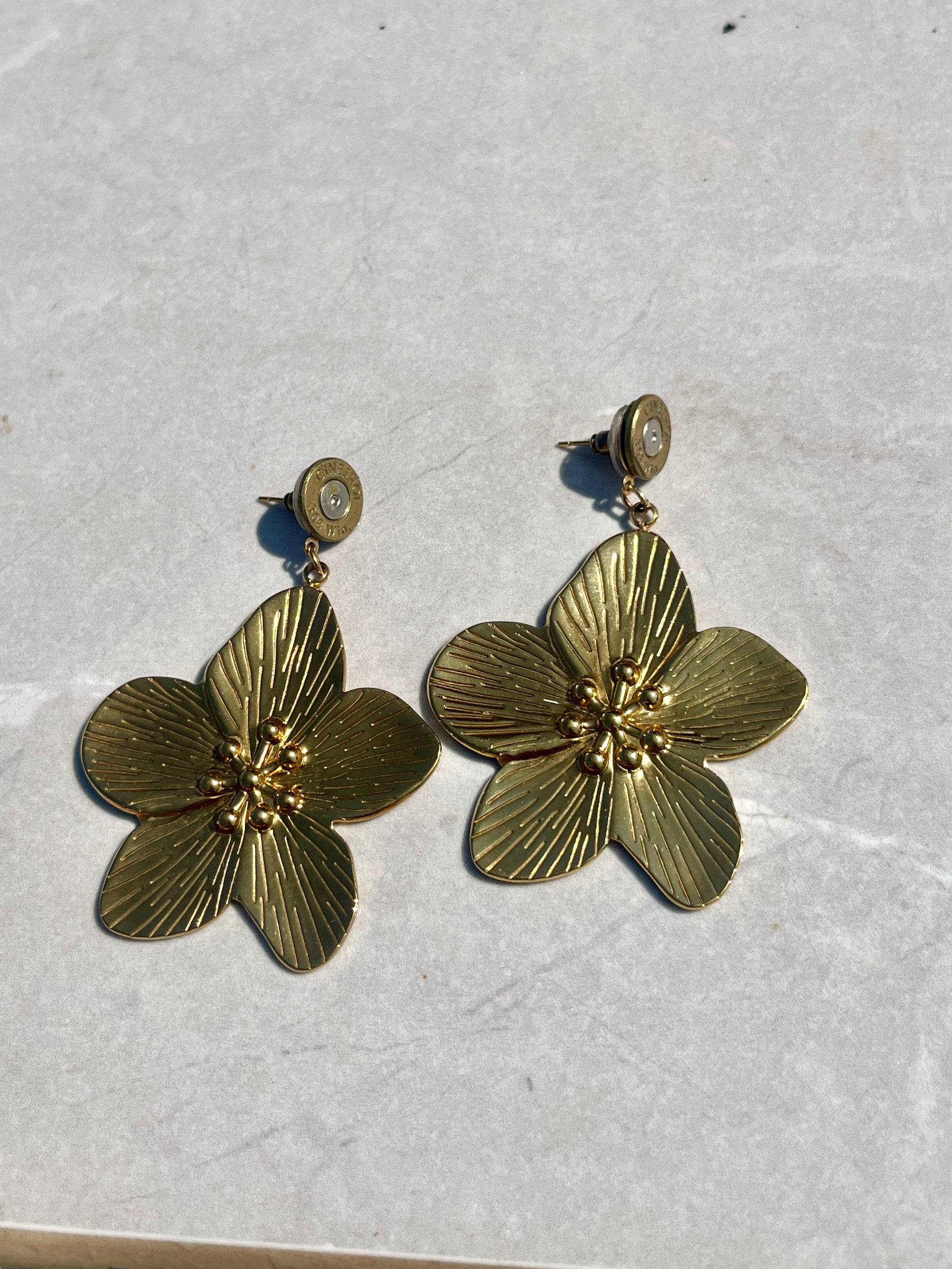 Die "Golden Flower Hour" Ohrringe haben die Form einer Blume. Sie sind etwas schwerer, stechen aber durch ihre Größe heraus und sind genau das richtige für den Alltag oder Momente in denen Schlichte Ohrringe dem Anlass entsprechen.