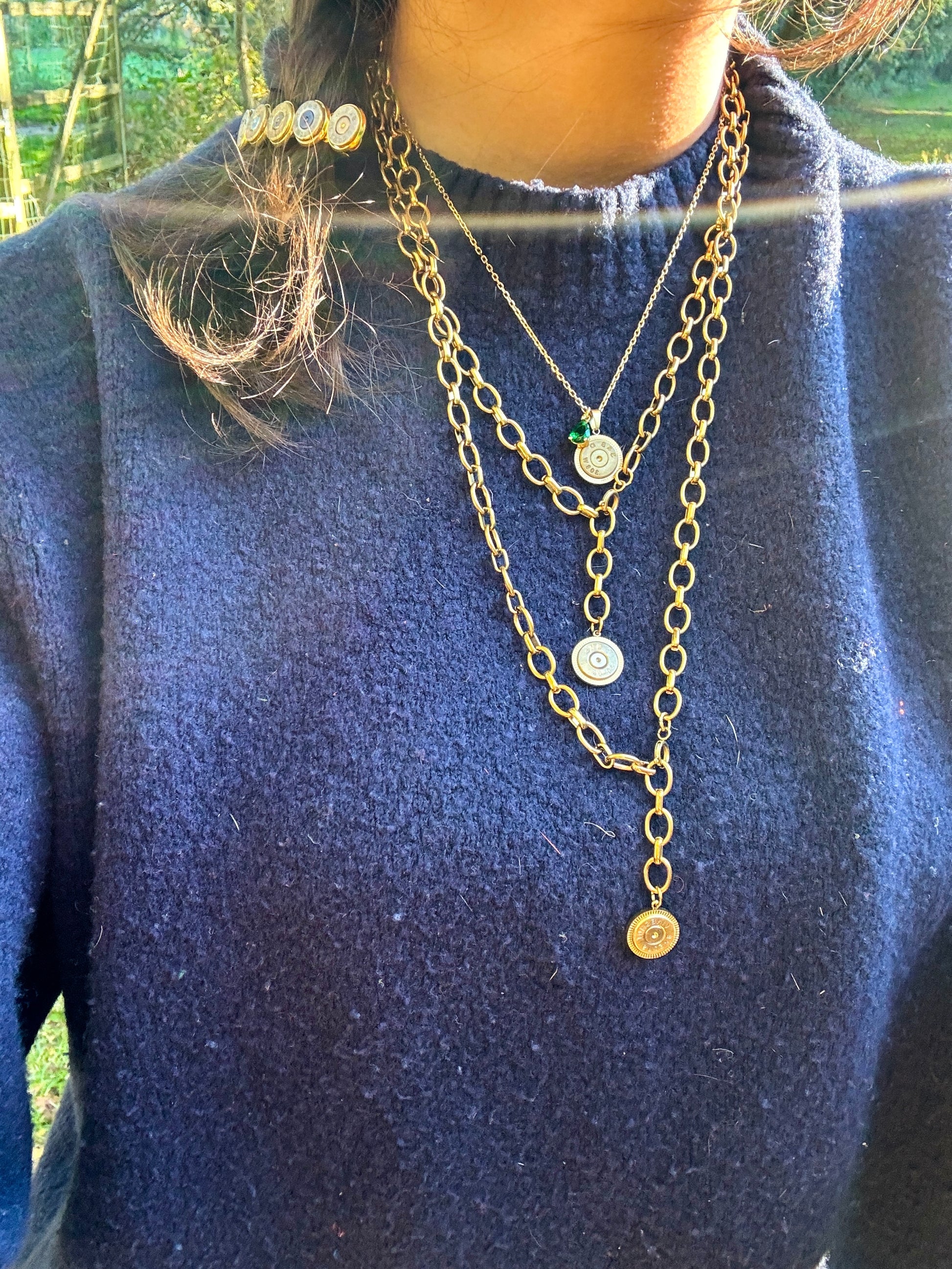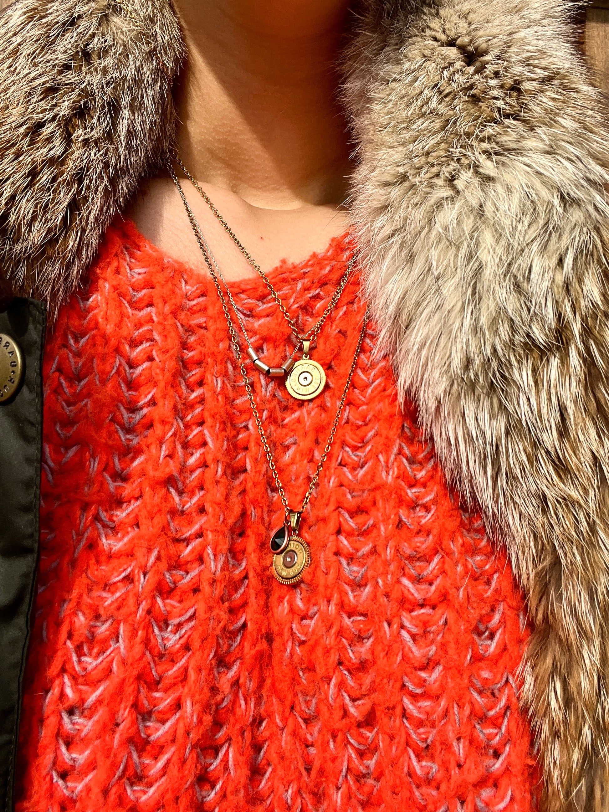 Die "Hunter Kette" ist aus Edelstahl gefertigt und sehr fein. Sie ist in zwei Längen erhältlich: Kurz ca. 40cm (Gesamtlänge) und um 3cm verstellbar, Lang ca 60cm (Gesamtlänge).Sie ist ein Basic Piece, eignet sich für jeden Tag, Outfit und Anlass. Die Kette ist sehr hochwertig und durch die Patrone in der Einfassung bekommt die Kette einen super edlen Touch.