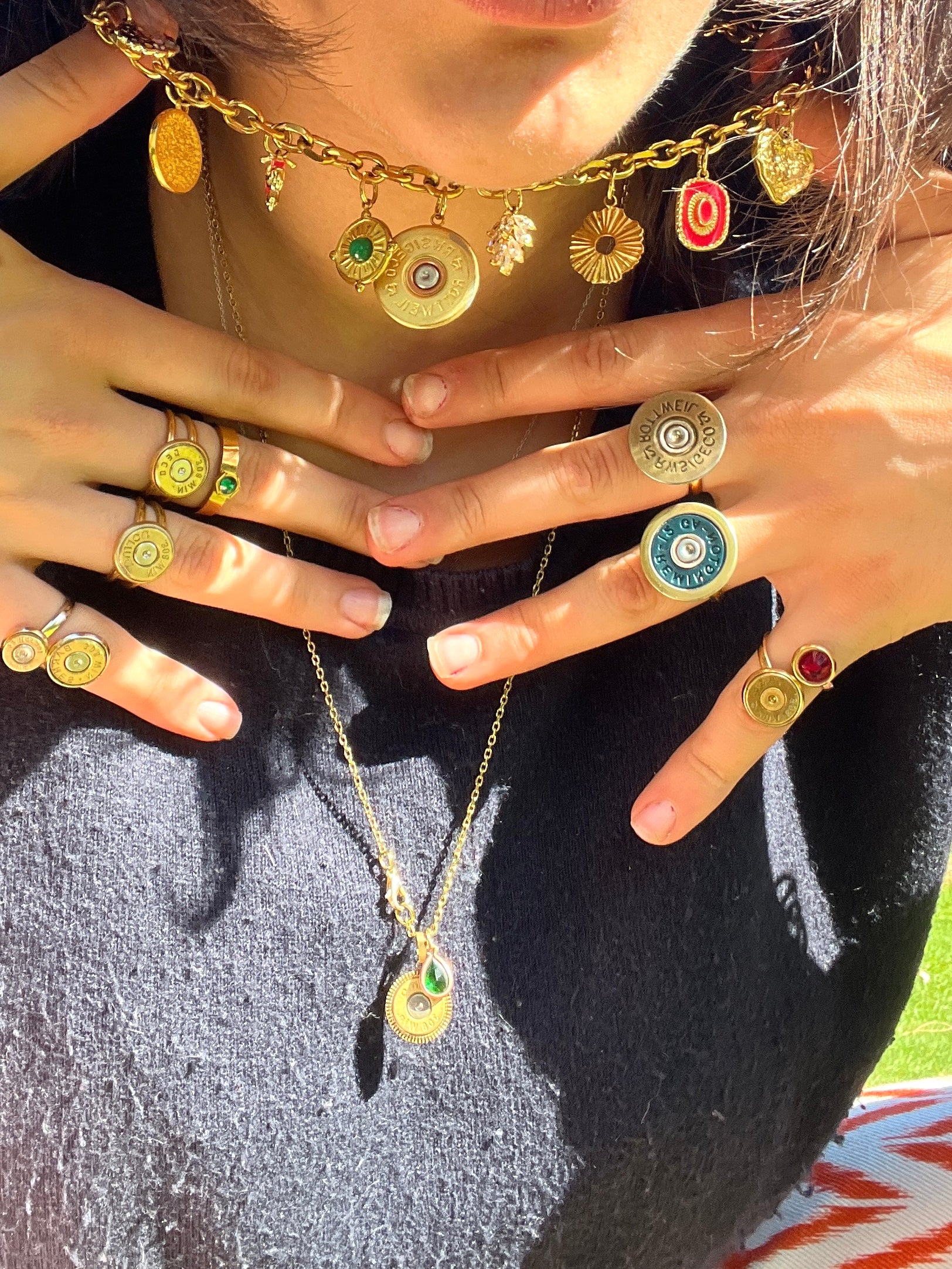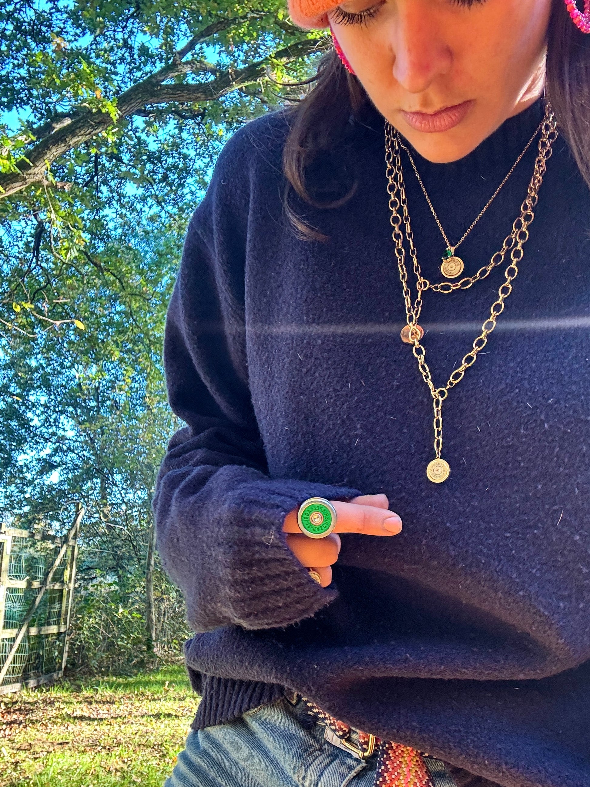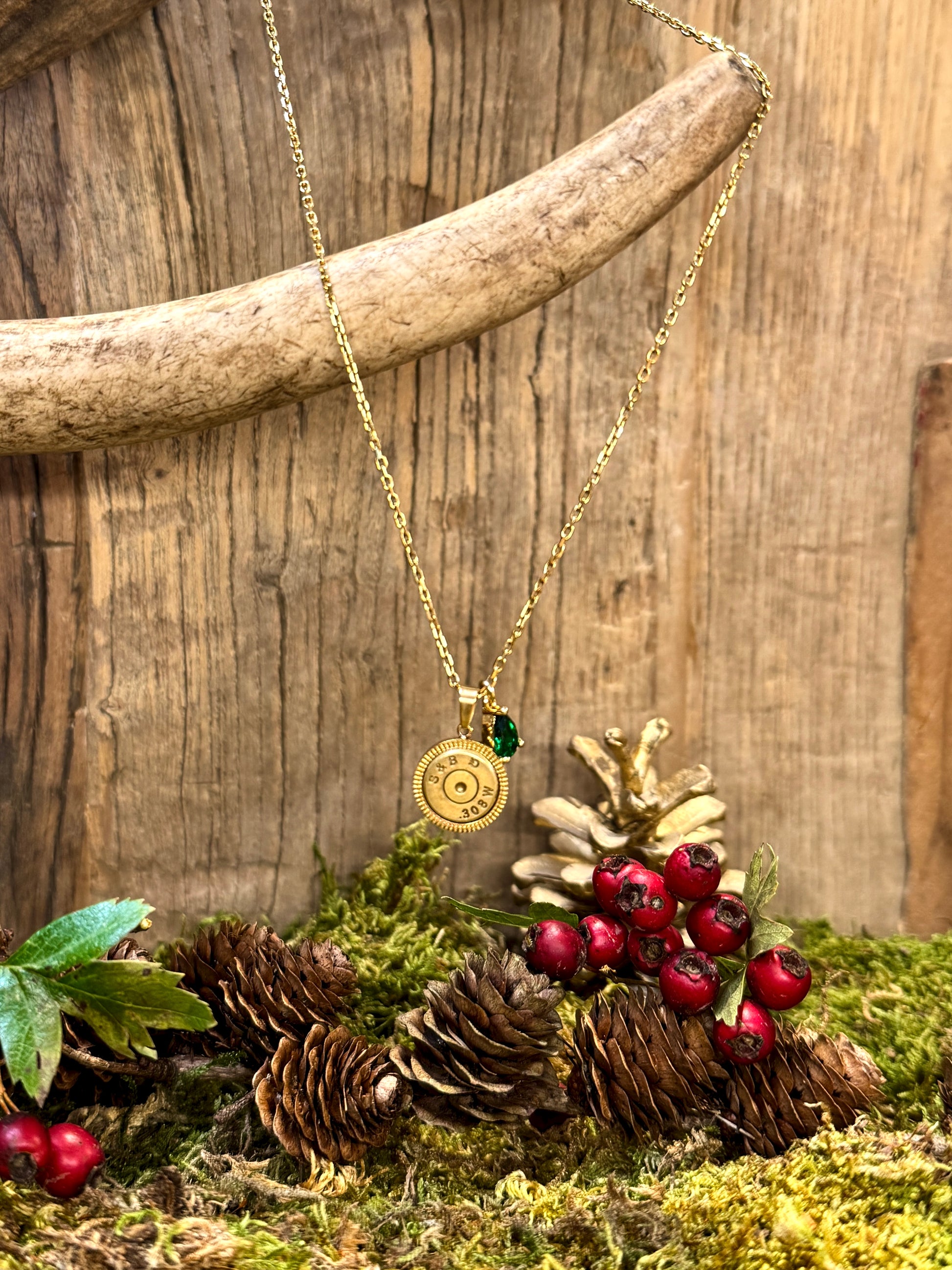 Durch den waldgrünen jagdlichen Anhänger bekommt die Kette noch ein gewisses Extra dazu und lässt sich fantastisch mit anderen Schmuckstücken wie z.b. der Charm Kette, dem Charm-Bracelet "Hunter" und einem schicken Paar Ohrringe kombinieren.