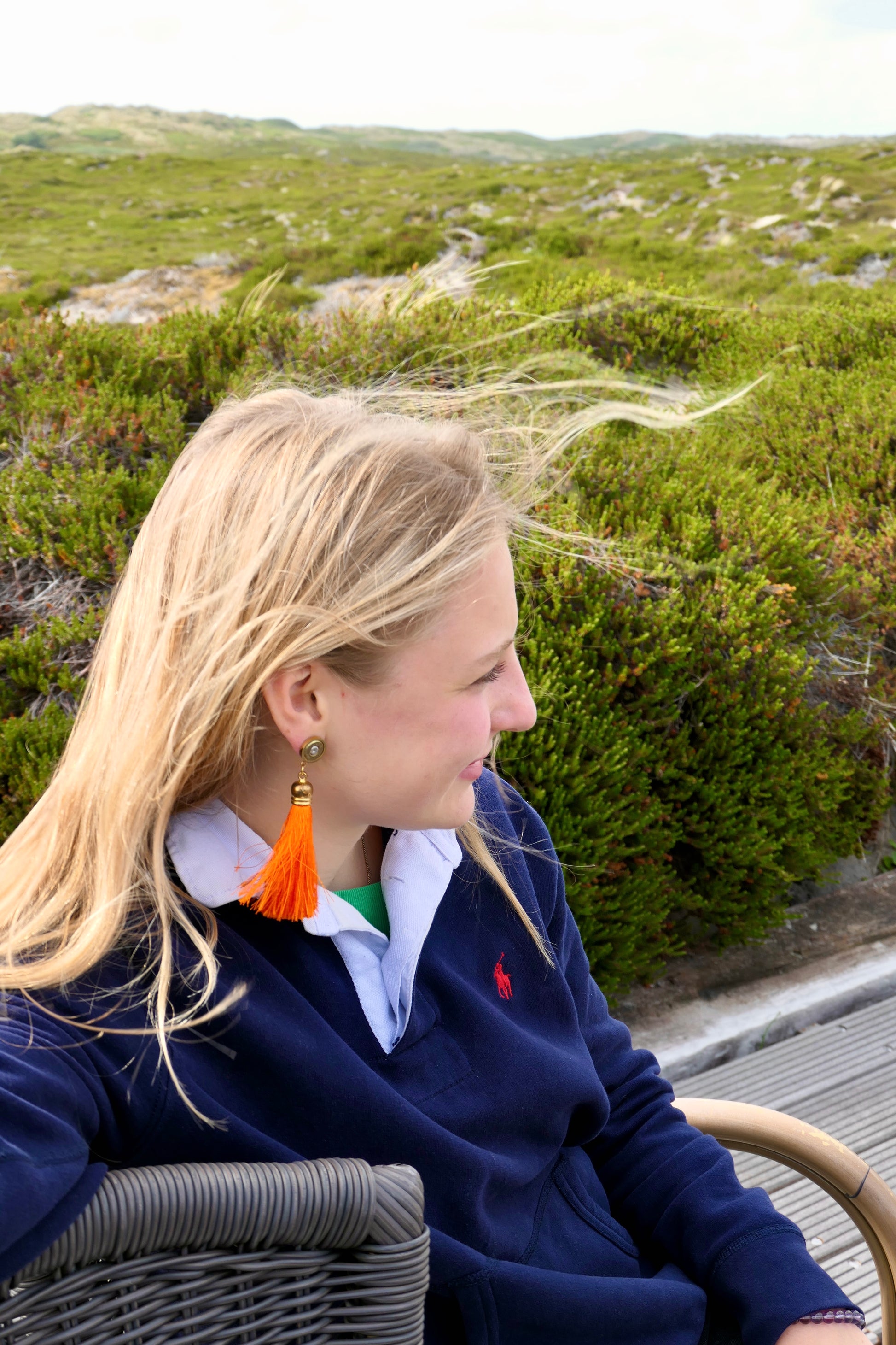 Die Orangenen Tassel sind das must-have für den Sommer oder die Geselschaftsjagd Saison! Sie sind super leicht und der Stecker ist etwas anders als die der anderen Ohrringe, ist aber auch nickelfrei und ein stückweit Edler. Farblich passen sie zu allem und bei jeder Haarfarbe sehr gut.