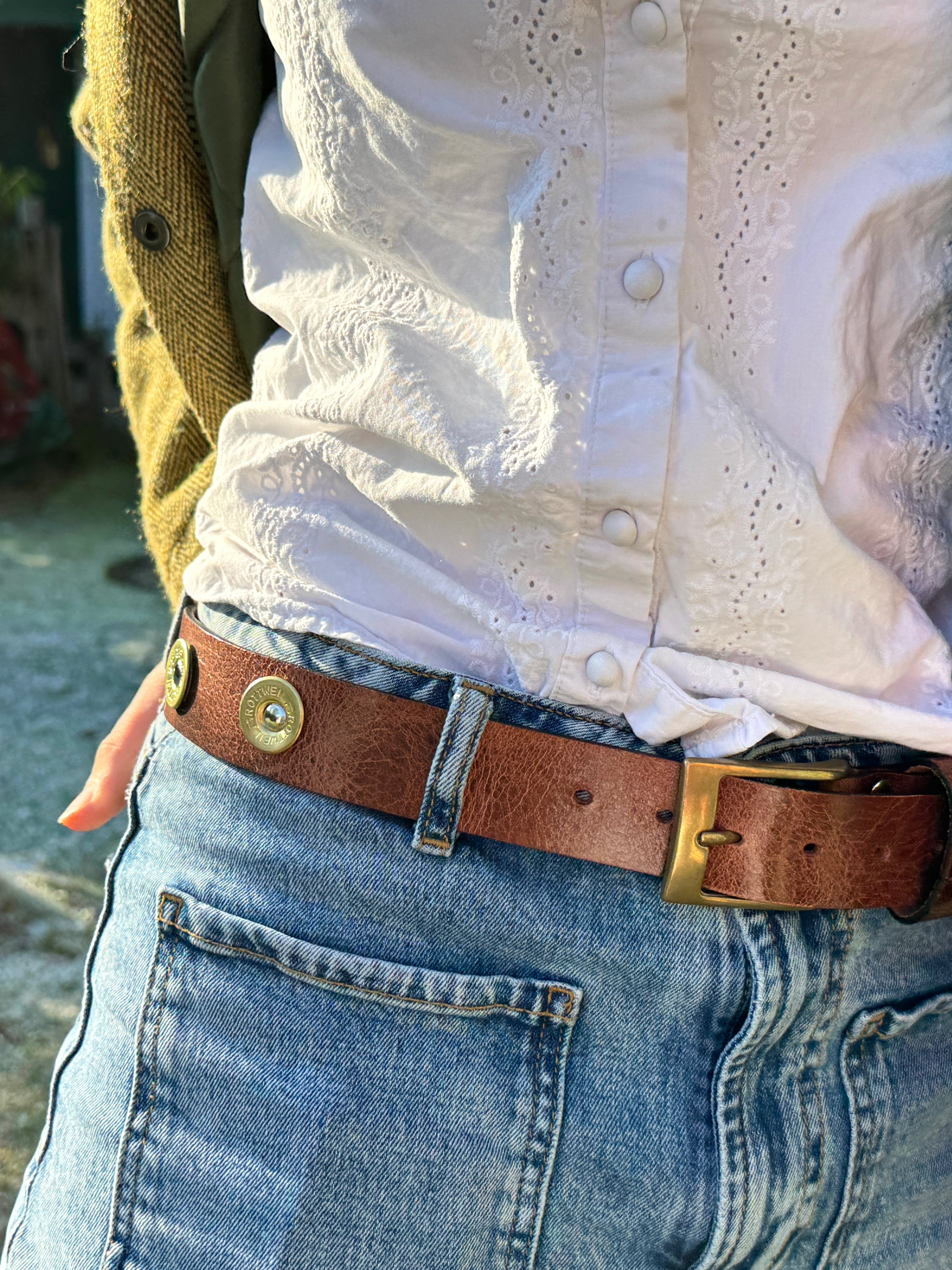 DER Patronengürtel aus kräftigem und Robustem Rindleder ist ein lebenslanger Begleiter, dessen natürliche Oberfläche mit der Zeit an Charakter und Patina gewinnt. Ein Accessoire das ideal zu allen Hosen passt und somit jedes Outfit aufspiced (aufwertet;).