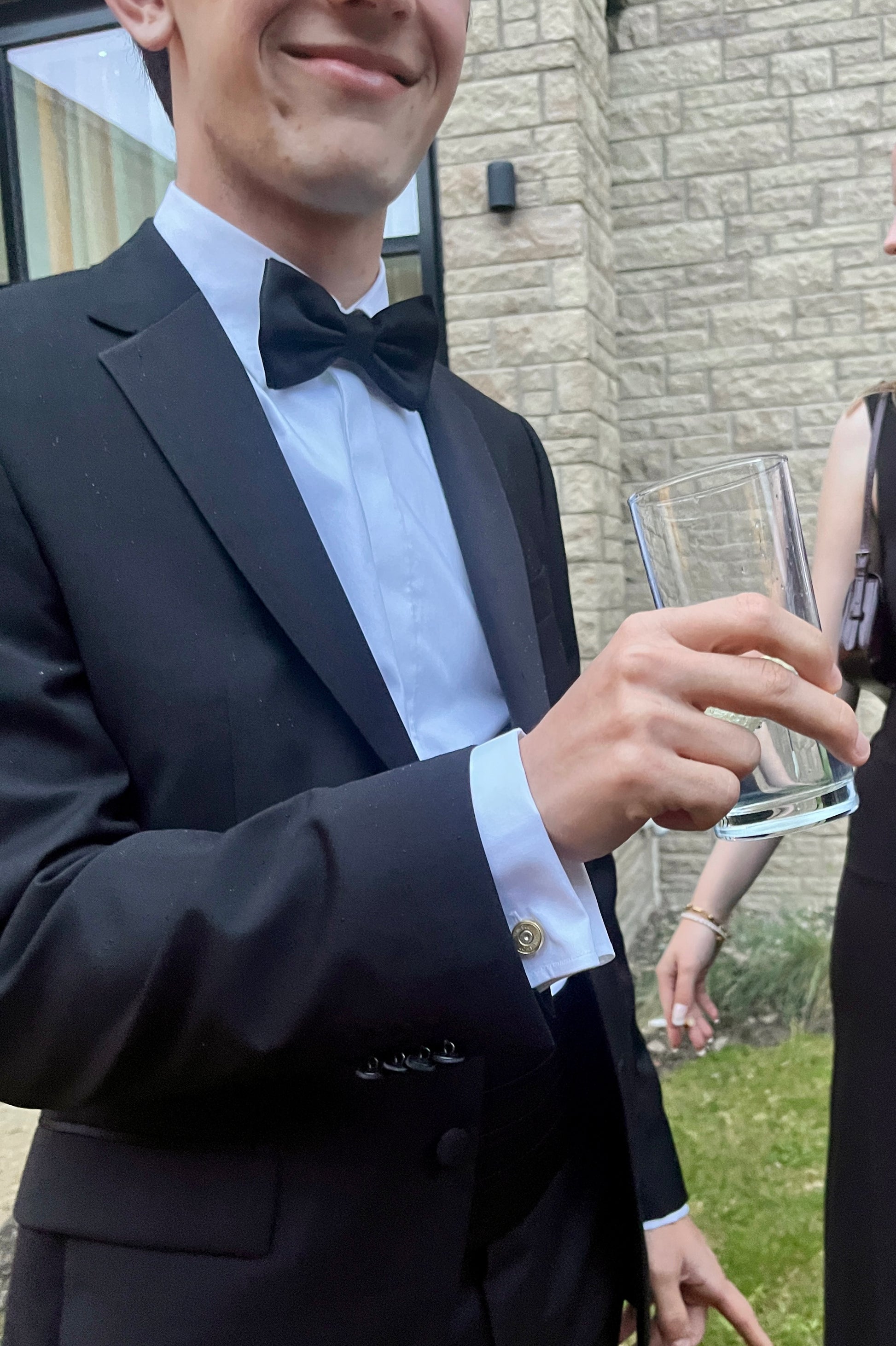 Die Manschettenknöpfe sind silber und haben eine goldene Patrone, was einen spannenden Kontrast erstellt. Sie sind aus Edelstahl gefertigt und haben somit eine top Qualität. Zudem eignen sie sich für Ihn als Geschenk äußerst perfekt!