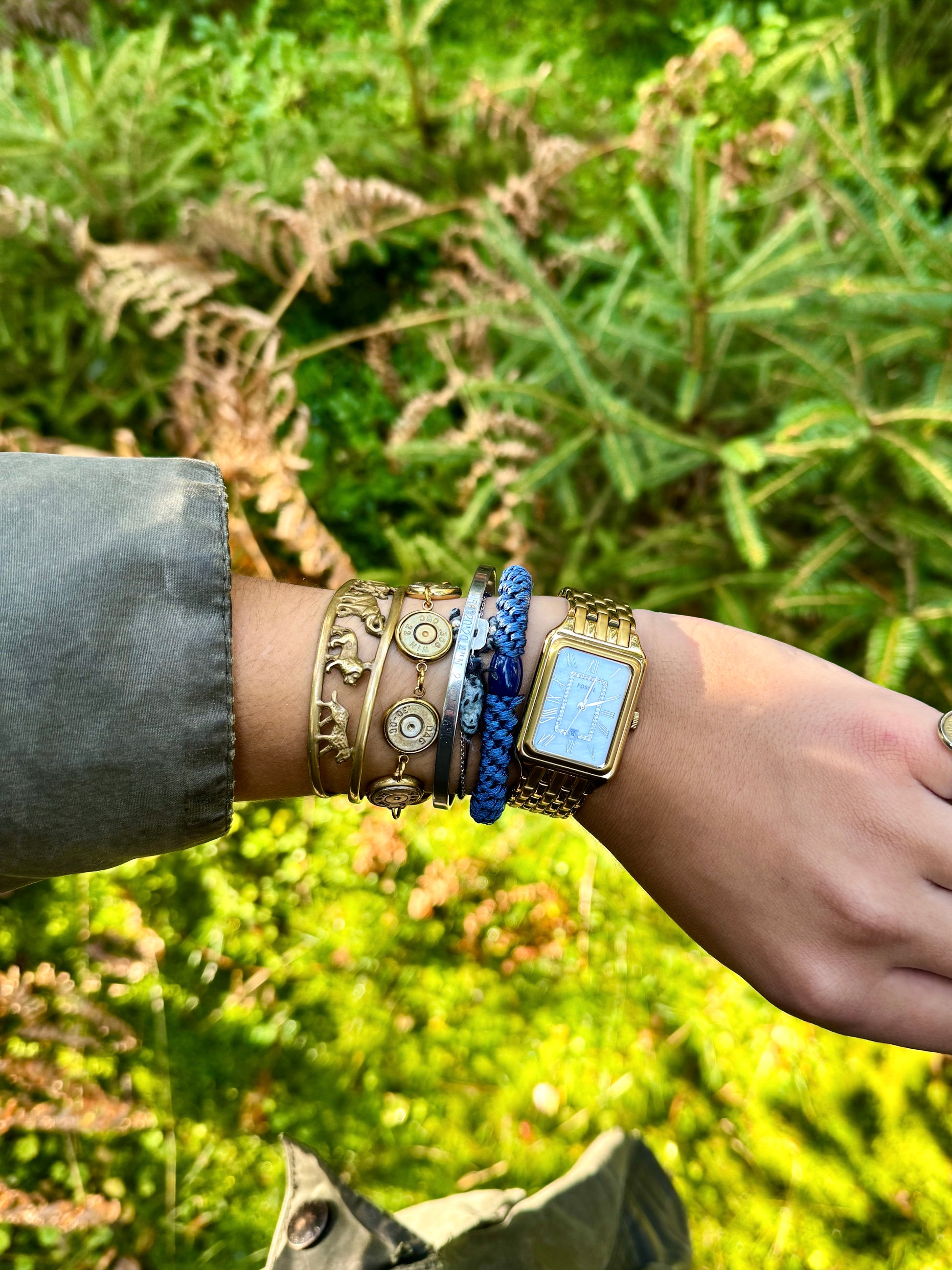 Das "Simply Bullet" Armband ist aus Edelstahl gefertigt und enthält Patronen rundherum. Das Armband ist super dezent, was es zu einem unauffälligen Statement macht. Es lässt sich daher wunderbar in deinen anderen Schmuck integrieren.