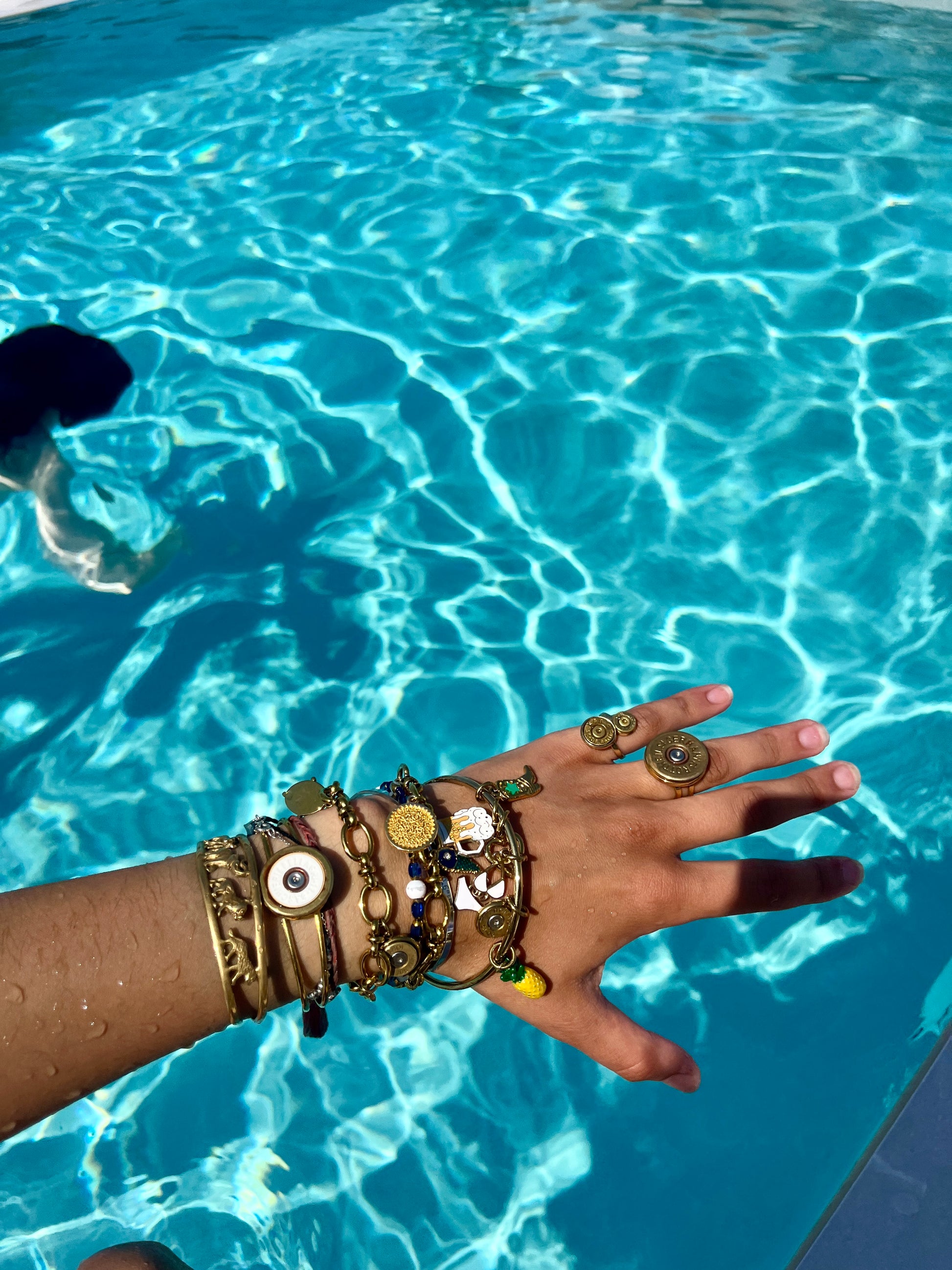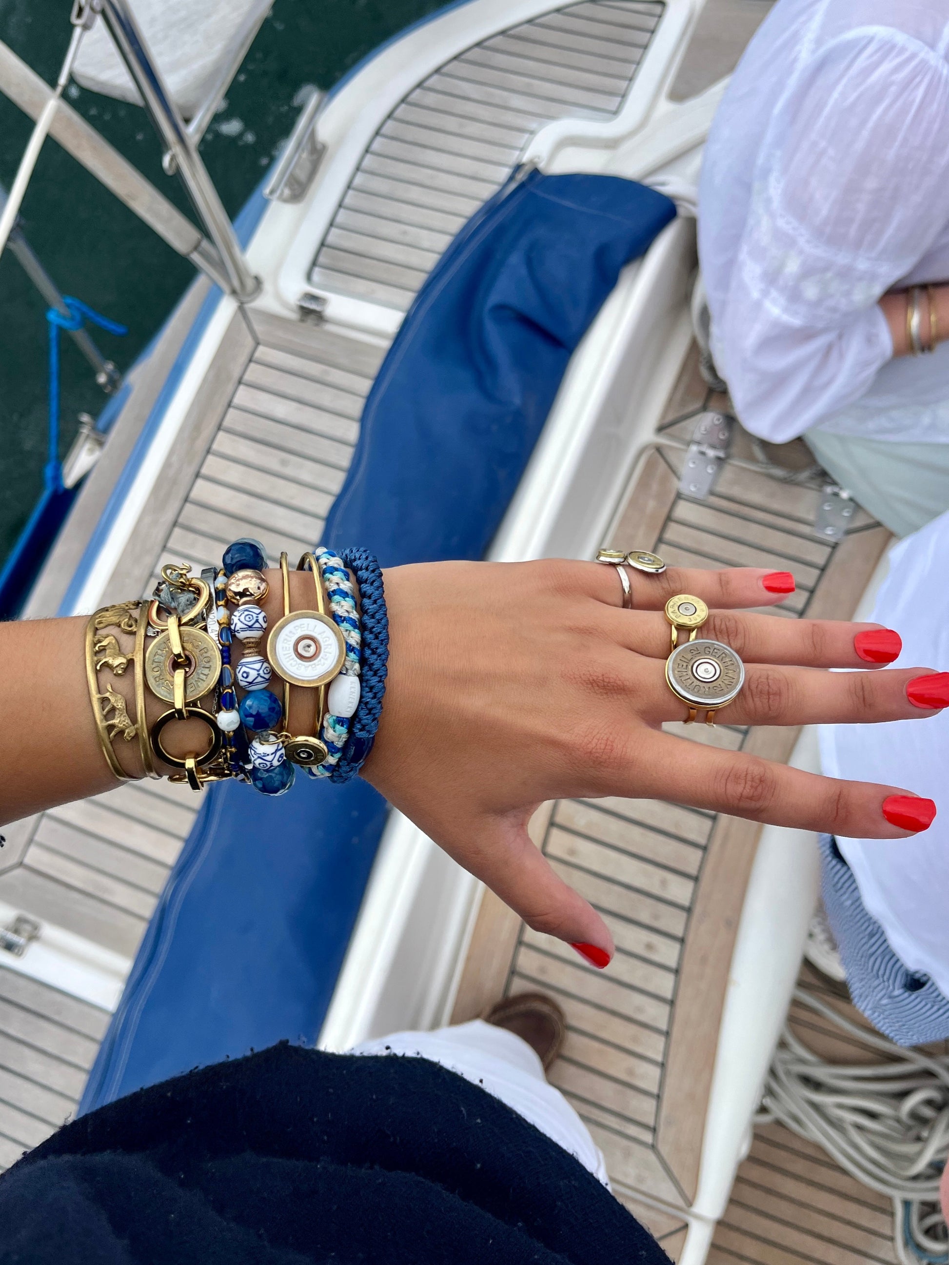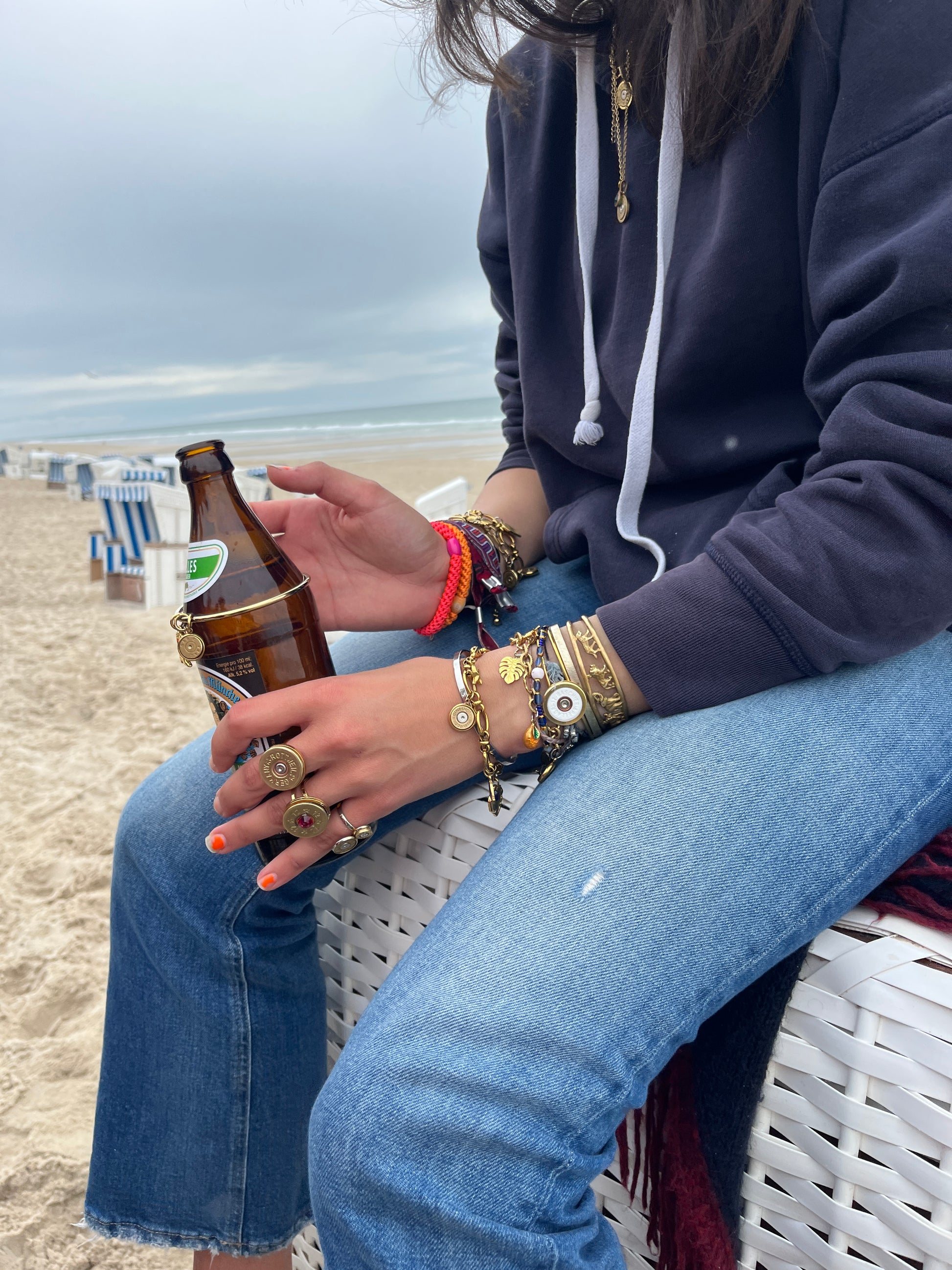 Der Schrot Armreifen zeigt zwar immer 12 Uhr an, ist aber verlässlich was die Haltbarkeit angeht. Er ist aus Vergoldetem Edelstahl gefertigt und ist DAS Statement piece am Arm! In Kombination mit dem Schrot Ring ist das Set genau das richtige um den Tag etwas aufzuspicen.